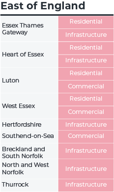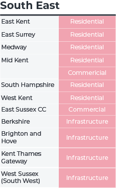 In smaller sub-regions, single, large offices, retail and residential projects can also generate hotspots: two residential retirement complexes totalling over £100 million in West Malling and Tunbridge Wells underpinned West Kent’s hotspot status, for example.
