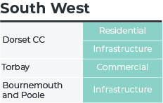 As discussed, some regions of the country host more construction activity than others. Westminster was in the top 10 largest regions in terms of the value of contracts awarded in 2024. However, the value of contracts awarded in Westminster was 25% lower than in the previous year, so whilst it will provide a large source of construction work, it is not hotspot regions.
