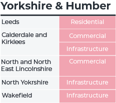 Construction coldspots featured only lightly across Great Britain. The fewest were registered in the West Midlands (one), the North East, Yorkshire and the Humber, the East Midlands and Wales (two each).