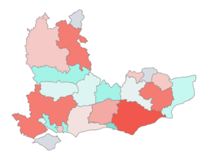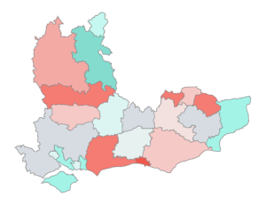 Contract awards for infrastructure projects in the South East totalled £3.1 billion in 2024, almost double the value awarded in 2023. Kent Thames Gateway and West Sussex (South West) were the two hotspots. Buckinghamshire CC was a coldspot. Four of the largest contract awards were valued at £150 million or above.