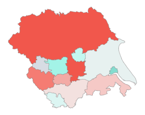 The Yorkshire and Humber region accounts for 6.6% of total UK GDP. Key sectors of regional economic activity are industrial production and manufacturing, distribution and transport and public administration. Construction grew 15.5% in 2023. The value of contracts awarded totalled £6.0 billion in 2024, an increase of 16.6% from the previous year. In terms of overall contract awards, North Yorkshire CC was a hotspot, whilst Sheffield and York were coldspots.